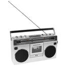 - This is a powerful, full-featured boom box in the classic fashion, just like you remember. It has a high-quality cassette tape player/recorder that plays your entire tape collection, plus you can make new recordings off the radio, with the built-in microphone or from an external source. Its two VU meters look great and help you dial in your recordings at just the right level.